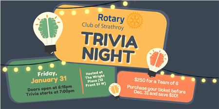 Get your team of 6 together and join us on Friday, January 31 at The Wright Place (13 Front St. W., Strathroy) for a night of questions and answers, teams and trials, and fun and laughs!